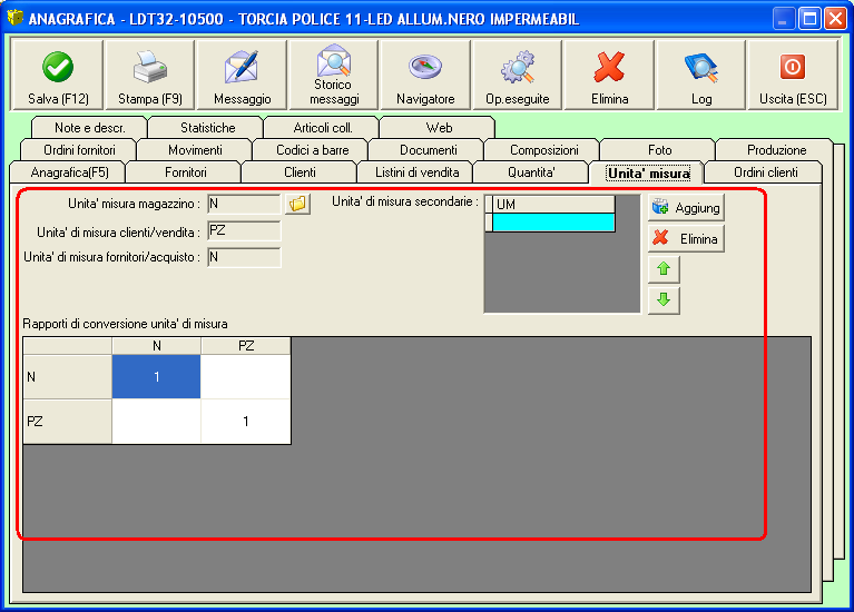 In effetti l'unità di misura N non esiste nella Tabella U.M. si trova sul prodotto solo perchè è stata importata così ma vanno sostituite con Pz,