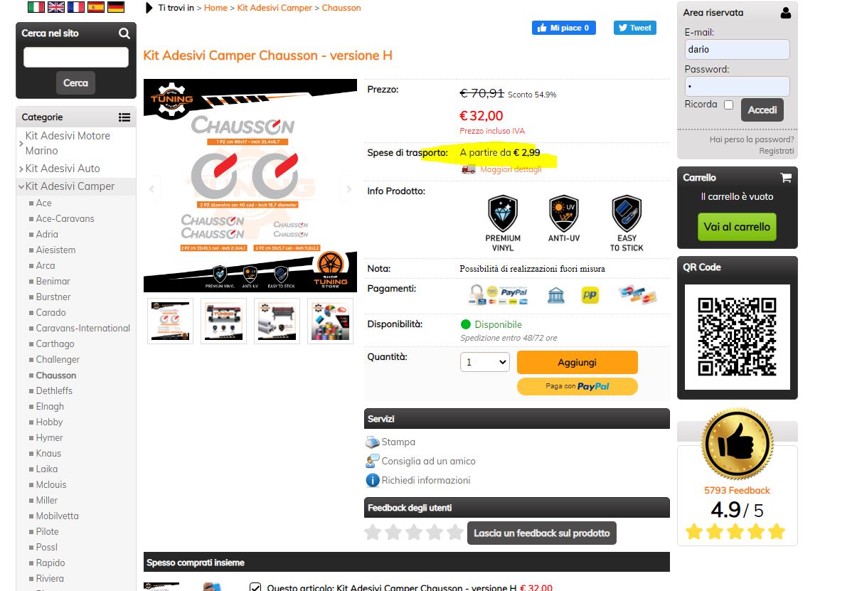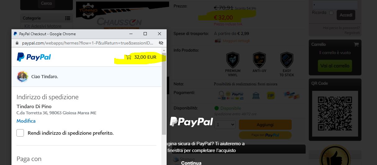 Le spese nel caso dei pulsanti PayPal nelle schede prodotto non vengono calcolate nella fase iniziale, perchè non sono calcolabili prima di aver identificato il cliente (zona di destinazione, paese, ecc.). Quindi anche se in prima battuta l'importo che si vede e' X alla fine quando si conferma il carrello si puo' transare X+spese. Comportamento anche a nostro avviso strano e discutibile, ma quando l'abbiamo fatto notare a PayPal anni fa, in fase di sviluppo, a loro sembrava la cosa più normale del mondo, e noi non possiamo fare nulla a riguardo