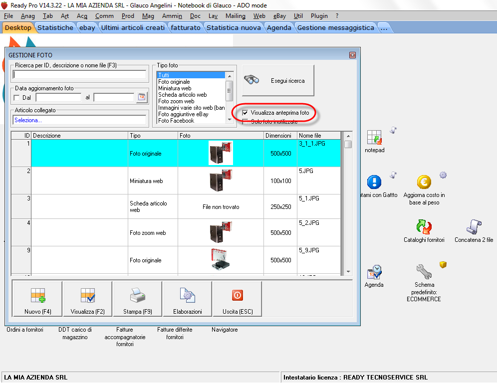 Citazione: esiste un modo per trovare le foto corrotte magari Con Ready l'unico modo per trovarle è ricercarle su ART > GESTIONE FOTO e attivare l'opzione indicata in figura in modo da identificare quelle con sfondo grigio oppure con scritta "file non trovato":