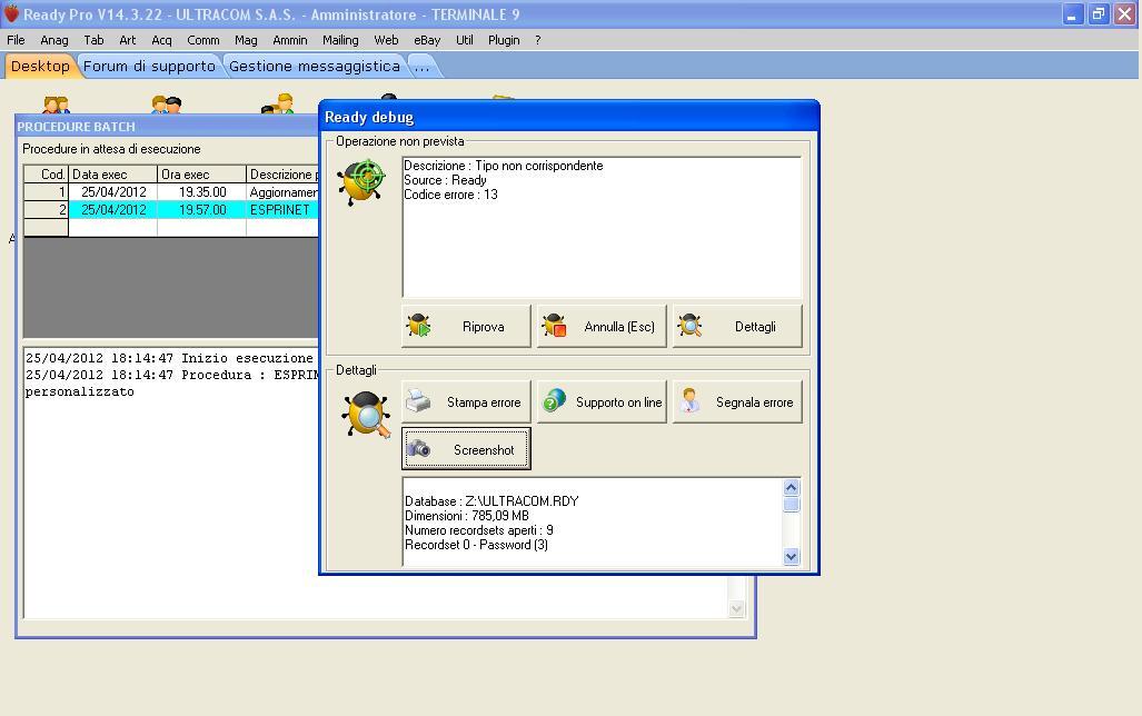 -Che versione di Ready Pro state utilizzando? -Esattamente in che fase dell'aggiornamento vi compare l'errore? Puo' allegare uno screenshot dove si vede tutto lo schermo? (in modo da permetterci di capire in quale fase dell'aggiornamento si presenta esattamente l'errore)