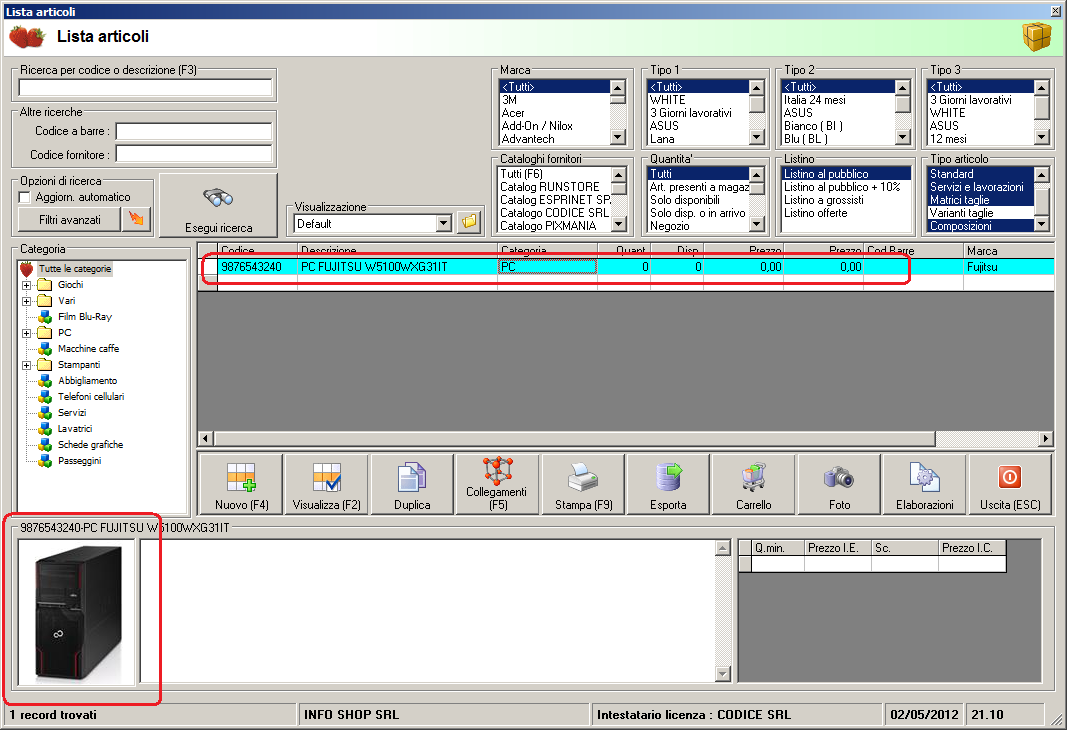 Ho trovato diversi articoli non caricati (nemmeno all'interno del catalog esprinet) di marca FUJITSU