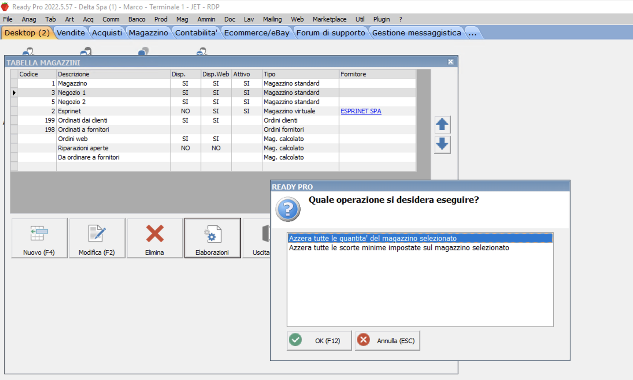 Citazione: importare tutte le nuove giacenze da inventario su ddt di carico, poi confrontare i due magazzini e nel caso Potresti semplicemente cambiare il magazzino selezionato per trasferire così con un click tutte le giacenze sul primo: