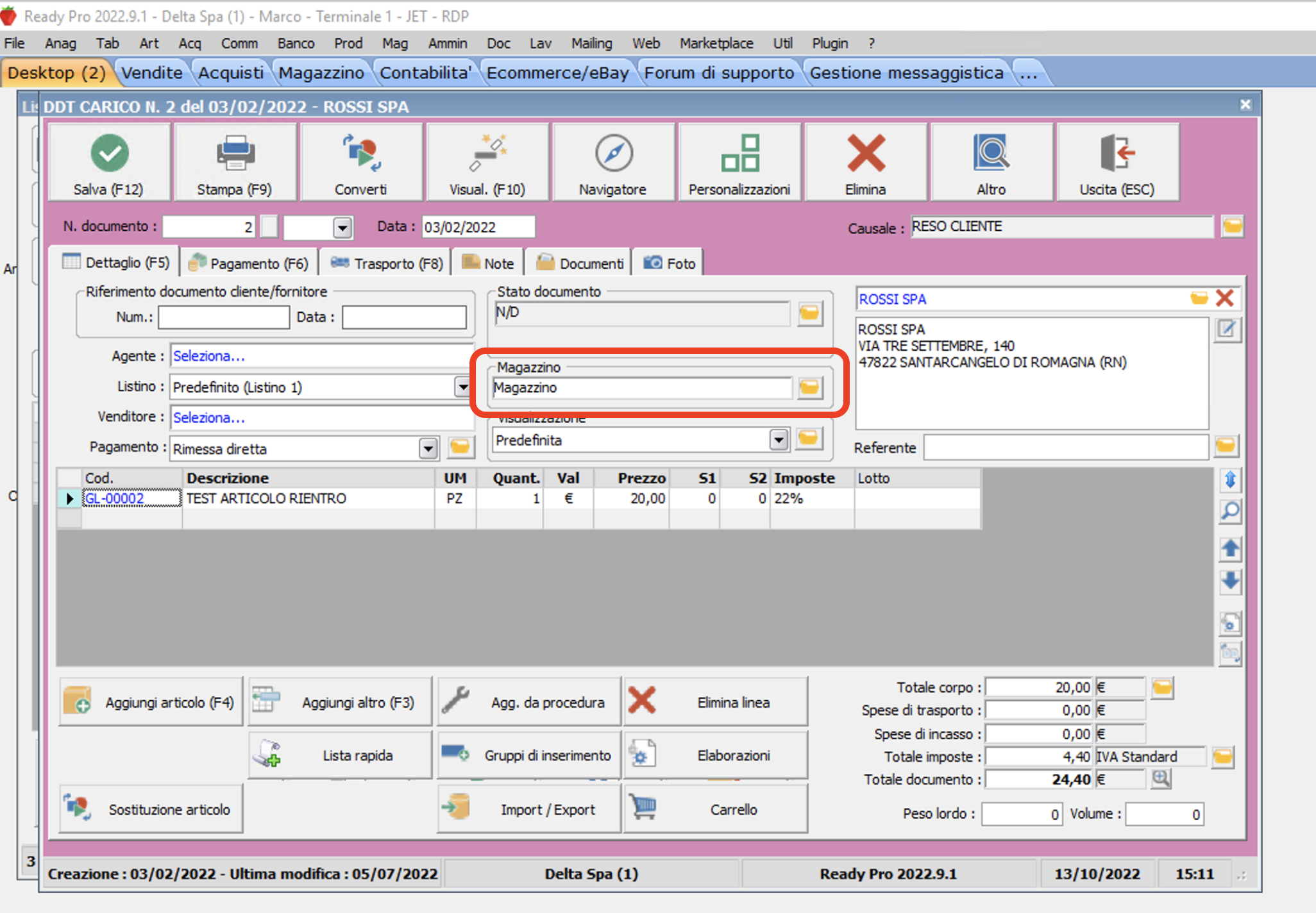 Quindi l'inventario nuovo lo posso iniziare a carica su un ddt di carico intestato a me?