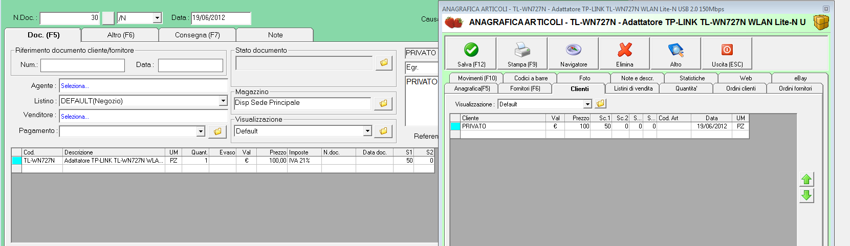 Es: Creo un DDT a un mio cliente, il prezzo dell'articolo è formato dal prezzo di listino + il mio ricarico. Faccio finta che l'articolo in questione costa 60 €, io modifico questo prezzo a mano in 50 €, quindi ho applicato uno sconto del 10% al mio cliente, vorrei che questo sconto venisse associato a questo cliente anche per i prossimi acquisti.