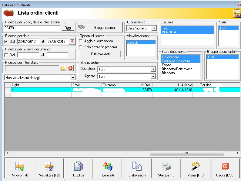 Ok, ho modificato le stampe, sembrerebbe a posto ma faccio delle prove. Però nella schermata con l'elenco degli ordini clienti, abbiamo dovuto aggiungere il campo descrizione il cui contenuto viene preso con uno script che ci avete fatto Voi, quello credo dobbiate modificarlo Voi, forse è meglio sentirsi per chiarire bene cosa debba comparire in quel campo Grazie