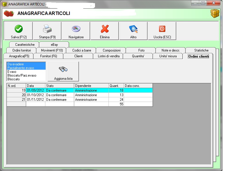 inoltre nell'anagrafica degli articoli compaiono negli ordini clienti anche i preventivi anche se non sono ordini clienti....!!!