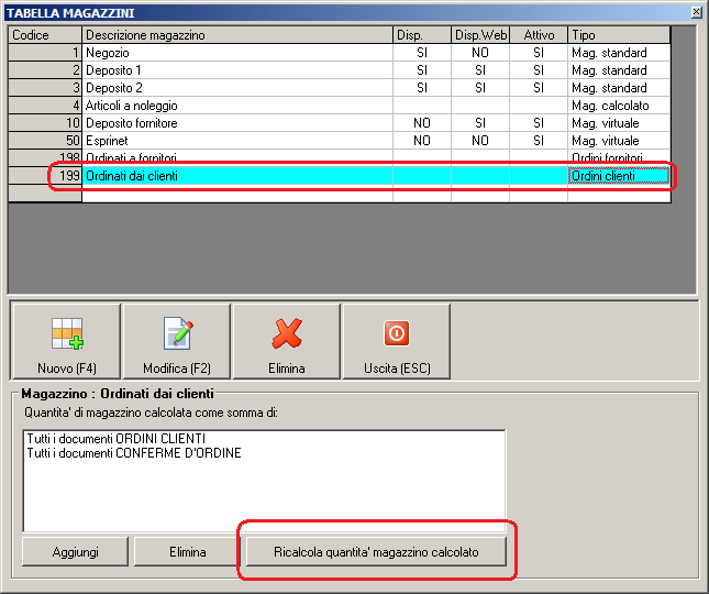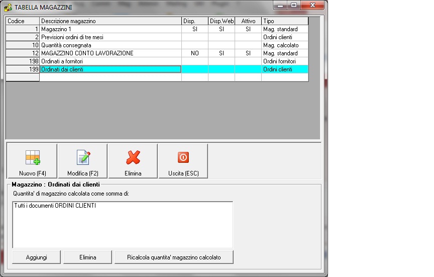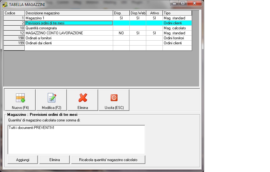 Quindi credo sia sufficiente -Eliminare il magazzino "Previsioni ordini di tre mesi" -Ricreare il magazzino ma con tipo "Magazzino calcolato" -Riavviare Ready Pro per caricare le nuove impostazioni