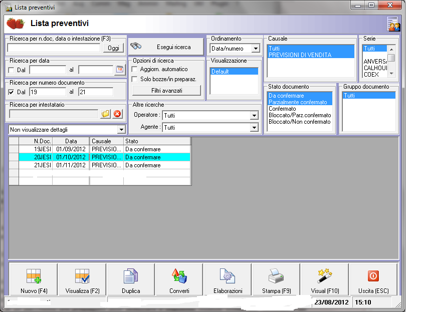 1) I documenti sono effettivamente degli ordini clienti (e non preventivi)