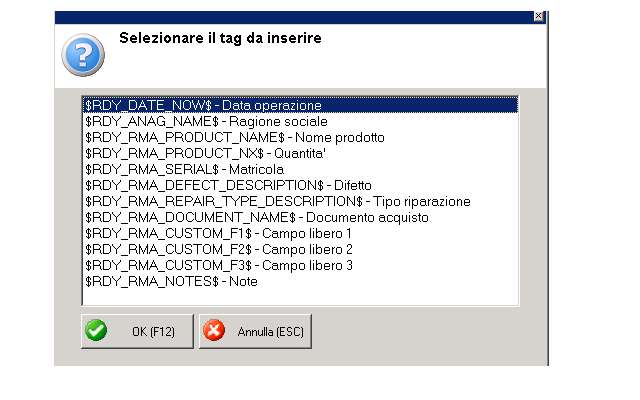 perdonatemi ma non riesco a trovare i TAG per costruire una ricevuta da inviare ai miei clienti quando inseriscono una riparazione sul ns. sito.