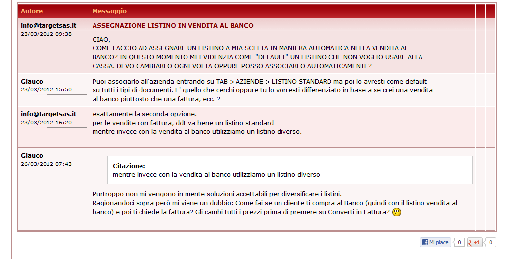 Leggevo questo vecchio post e credo di essere nella stessa situazione, di fatto io vendo solo On-Line, di conseguenza utilizzo il listino di default per tutto (a parte ebay che ha un listino a se), ora mi trovo a dover fare una fiera, dove per la vendita al banco vorrei applicare un listino diverso visti gli abnormi costi che dovrò sostenere, mi pare di capire che tramite tab ecc posso impostare il listino che desidero utilizzare per tutto, e per me non è un grosso problema visto che durante la fiera interromperò forzatamente la vendita on-line, però mi chiedo: non è più semplice legare un listino a un tipo di vendita??? mi spiego meglio: non è più logico prevedere per ogni tipologia di vendita, sia web, ebay o cassa, un listino assegnato di default dal quale poi sia possibile convertire in fattura o qualunque altra cosa ecc con i prezzi della tipologia di vendita di partenza?