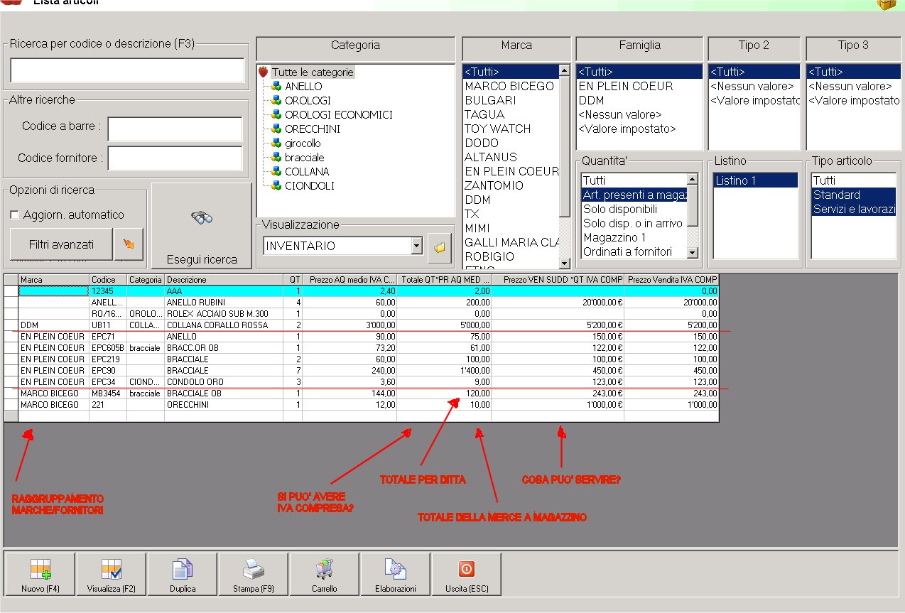 una sorta d'inventario suddiviso per fornitori dove vedo tutti gli articoli acquistati ed il loro relativo prezzo di vendita; alla fine di ogni fornitore mi deve dare il totale