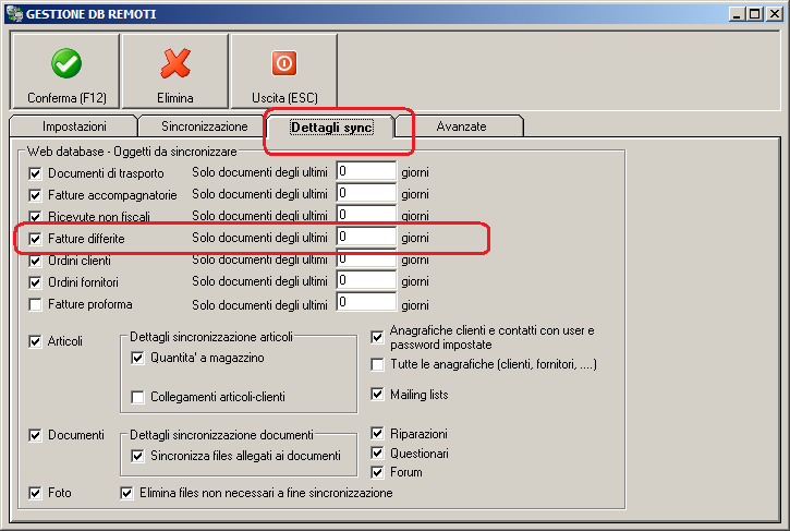 La prima cosa che consiglio di fare e' di controllare dal menu WEB / GESTIONE DB REMOTI che il tipo di documenti specifico sia selezionato per la sincronizzazione (di default dovrebbe gia' essere selezionato, ma e' l'unica spiegazione plausibile direi)