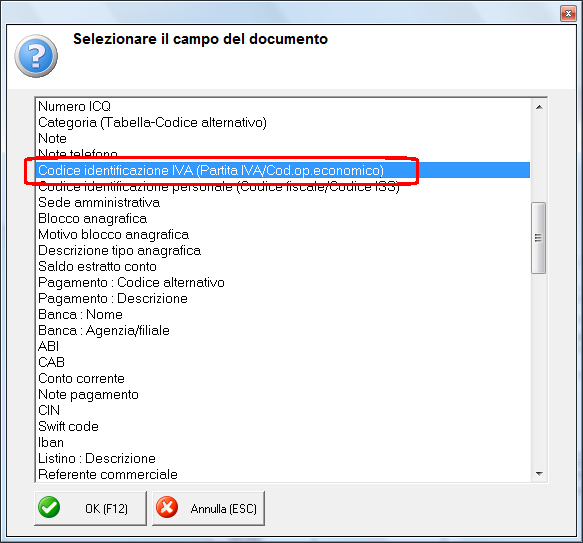"Ciao, a causa delle nuove schede di trasporto necessito di stampare sulla bolla di accompagnamento merci la partita iva del vettore. non ho trovato alcun riscontro sul gestionale, nel senso che non trovo nessuna voce corrispondente (se immetto la voce VETTORE: ragione sociale completa ecc..mi stampa solo fino al telefono e fax)" In merito a questo messaggio (di cui sopra) mi avevate risposto dicendomi che questo campo con la nuova versione sarebbe stato disponibile e quindi sarebbe stato possibile stamparlo. Questa mattina ha scaricato la versione aggiornata 11.9.7 e si, è vero che c'è il campo vettore: campo personalizzato (sub opzione), ma poi non ho trovato di nuovo la p.iva.. Mi potete indicare come posso fare oppure se io sono cieca e non la vedo???grazie! ciao