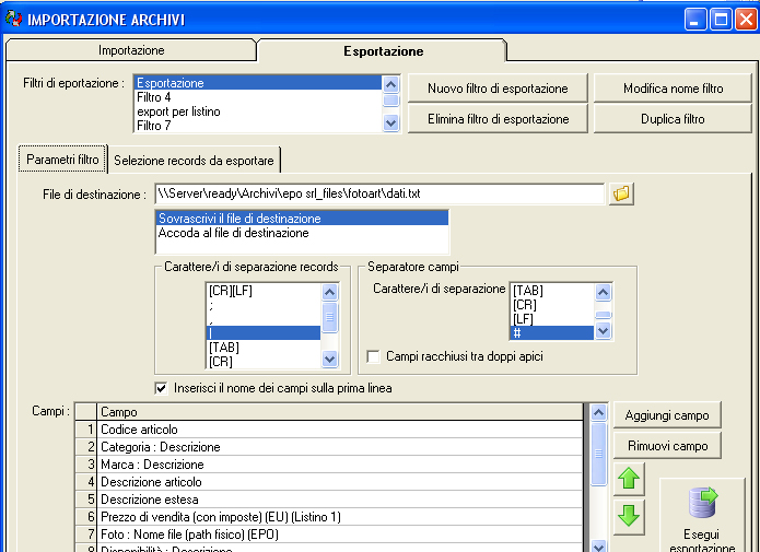 esporto sia i dati (.txt) che le foto che vanno a depositarsi nella "famosa" cartella "fotoArt"