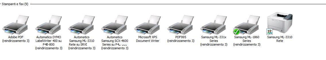 Abbiamo anche impostato dal Report di stampa , la stampante predefinita per ogni utente, solo che non ci stampa nelle stampanti che abbiamo collegate via usb. Le stampanti sono condivise e risultano come: SCX1000 REINDIRIZZAMENTO p4x900