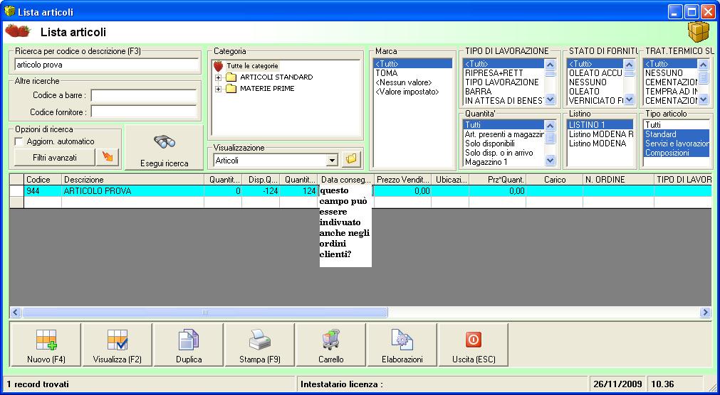 il calcolo dei fabbisogni è ottimo, ma da qui devo poi aprire la visualizzazione della lista degli articoli e ricercare gli articoli uno per uno per ottenere le atre informazioni!