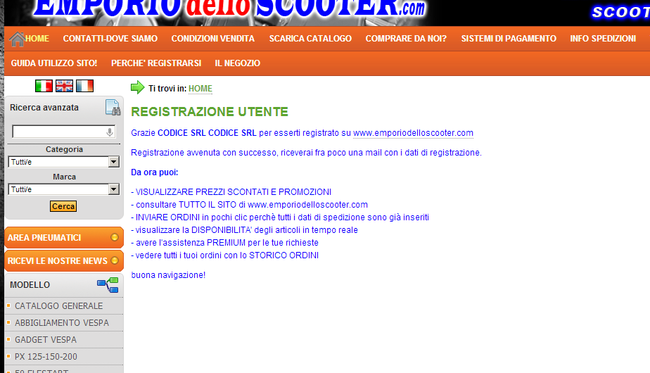 Salve Stefano, il problema era chiaro, ma quello che intendo e' che se riusciamo a vedere un esempio di email "sbagliata" possiamo bloccare la registrazione. Cioe' quando il cliente preme INVIA REGISTRAZIONE se l'email non e' corretta il sito non deve procedere. Gia' ora vengono fatti dei controlli, ad esempio se inserisce come user/email "prova" oppure "1234" la registrazione non procede. Ma evidentemente l'email inserita dai suoi clienti in questo caso e' simile ad una email ma comunque non formalmente corretta. Per questo deve farci un esempio di una email sbagliata inserita da un cliente: perche' se era veramente sbagliata la registrazione non doveva procedere.