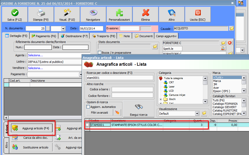 forse mi ero spiegato male? vi riassumo passo ,passo l'inserimento di un ordine fornitore, nrl momento che iniziamo a caricare i vari articoli nel corpo del documento...
