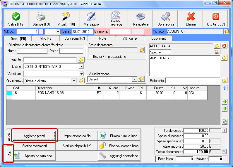 Io parlavo del carrello perchè è il modo più veloce di compilare/editare gli ordini, mentre la procedura "aggionr prezzi" esula dal discorso carrello.