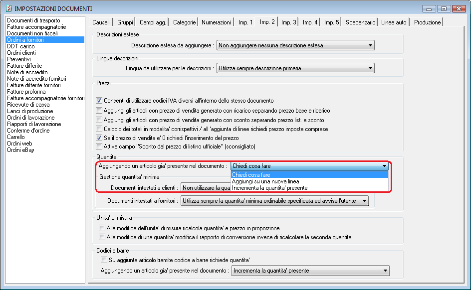 Citazione: B. permette la scelta "carica nuova riga" o "aumenta q.tà esistente".