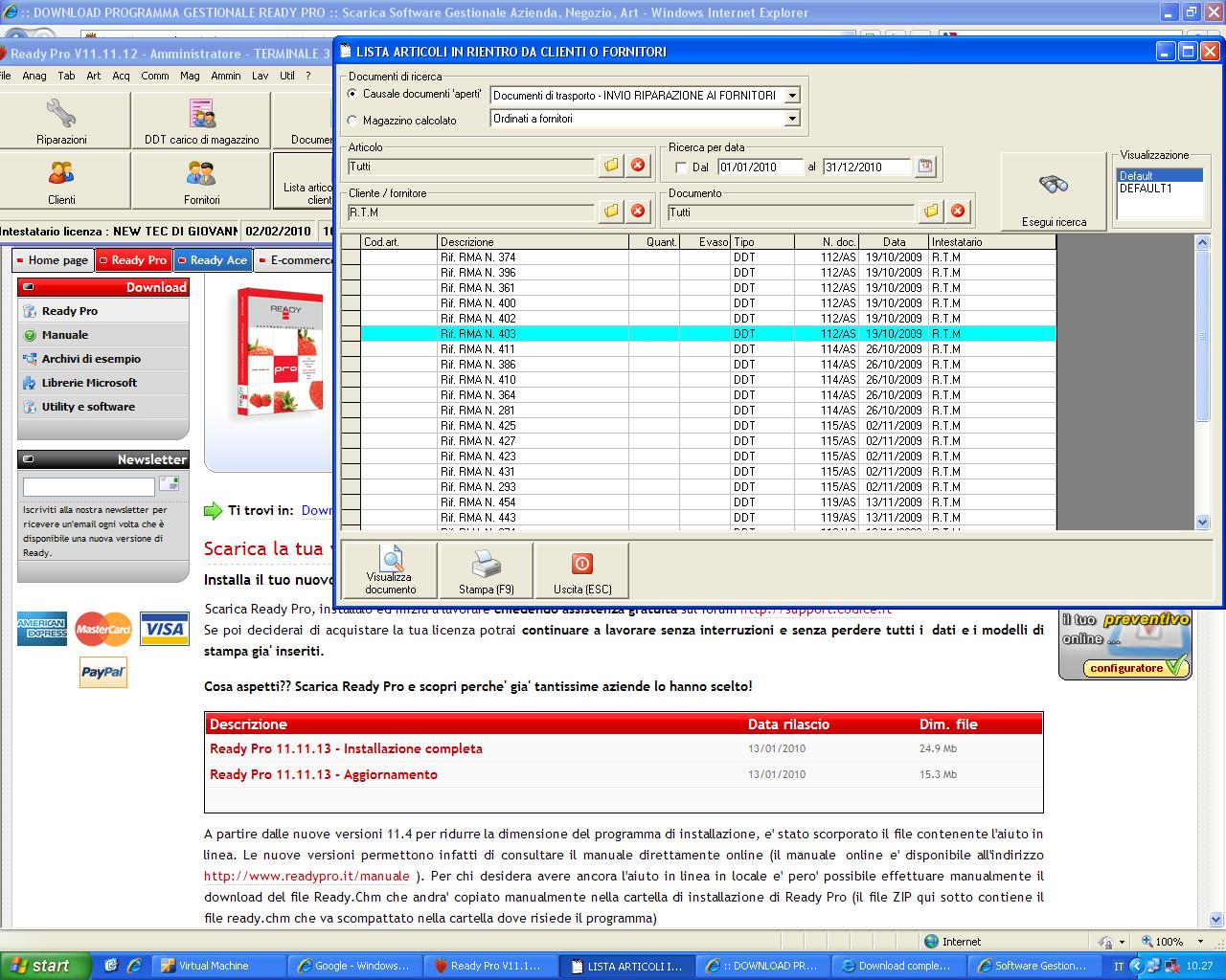 credo di aver capito una cosa riguardo a questi errori. in effetti credo che tale problema si presenti quando un articolo risulta presente su vari documenti, mi speiego meglio se un cellulare esce dal mio negozio per andare in un centro assistenza io effettuo un documento di trasporto, quando rientra riparato io registro quest operazione con documento di carico magazzino. a volte pero tale cellulare risulta non riparato oppure dopoun po ripresenta lo stesso problema allora io riapro la stessa scheda riparazione e inserisco tale cellulare in un altro documento di trasporto, quando ritornerà riparato io credo un nuovo carico di magazzino, dopo aver faatto questo nasce il problema nella lista articoli a rientrare. spero di essere stato chiaro