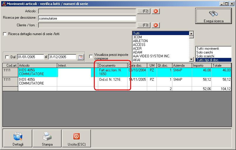 Sempre nel Pannello "Movimenti Articoli..." non ho trovato l'opzione per poter visualizzare il tipo di documento nella lista della ricerca, è possibile aggiungere questa opzione o non l'ho semplicemente notata io?