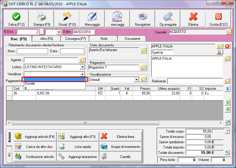 DDT DI CARICO - CANCELLARE IL VENDITORE INSERITO