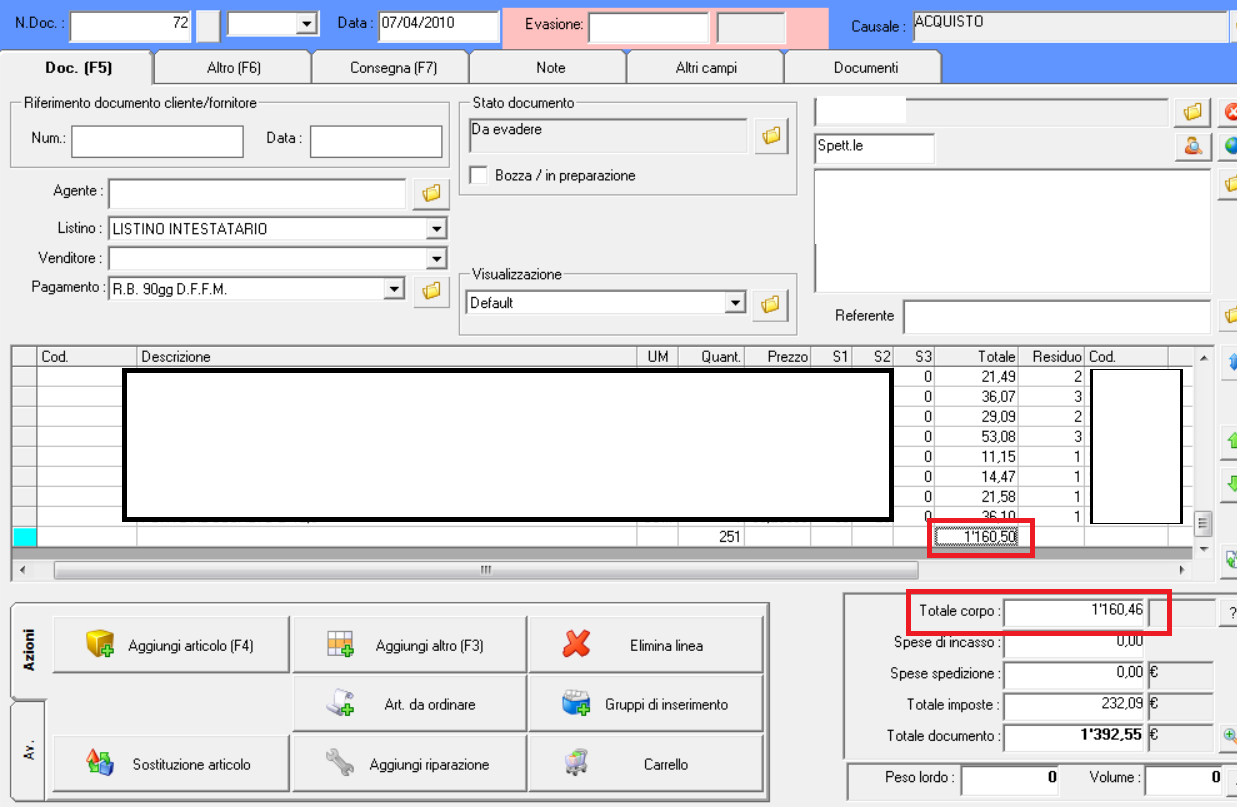 Ho controllato riga per riga, prezzi singolo.. sconto ed importo riga..ma alla fine ho questi schisi di differenza..