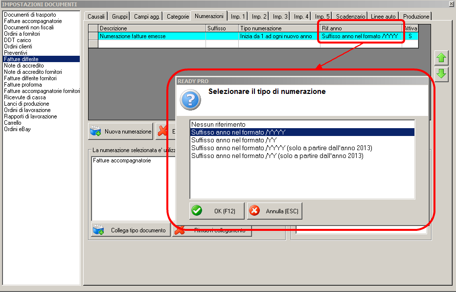 In teoria tutte vanno bene a meno di un pronunciamento in senso contrario. La nostra intenzione e' di rilasciare entro lunedi prossimo un aggiornamento che consenta di aggiungere in automatico un /2013 o /13 alla numerazione senza dover intervenire sulle serie numeriche codificate in Ready Pro (che crea altri problemi come la necessita' di creare nuove serie ogni anno, problemi legati ad alcune visualizzazioni, automatismi eventualmente creati legati al magazzino, ecc.)