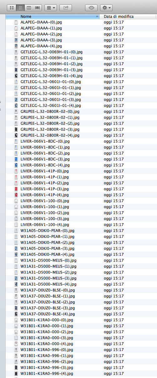 - ho inserito tutte le foto in una cartella e le ho rinominate come la matrice di riferimento ,ovviamente con un numero progressivo finale e il .jpg (vedi 1°screenshot)