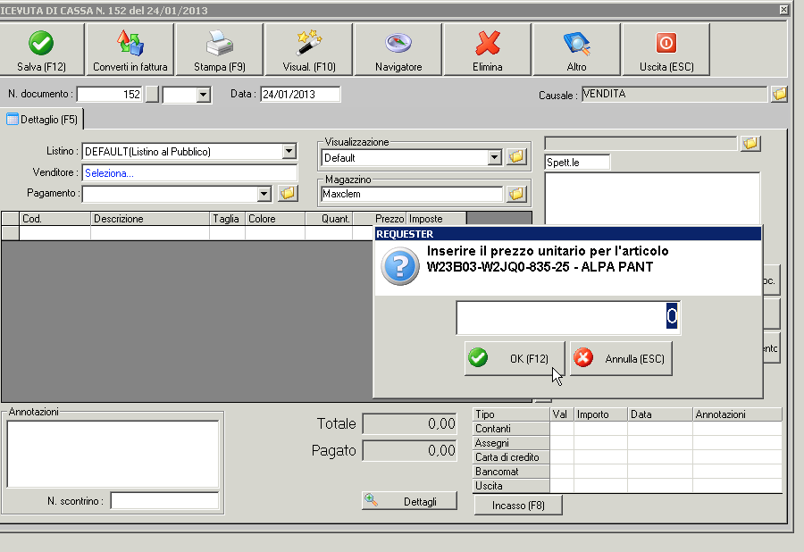 Buongiorno, avevo intenzione di inserire la stessa domanda, ma vista la presente continuo sul seguente post. Un mio cliente che ha un negozio di abbigliamento,ha un problema simile; cioè se effettua una vendita con sconto come in esempio seguente:
