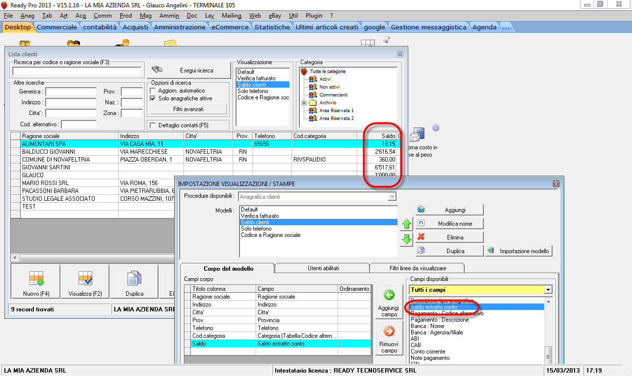 Citazione: non capisco appunto come vedere questa cosa,ma soprattutto come vedere se un cliente ha un credito e di quanto... Puoi personalizzare la lista delle anagrafiche in modo da visualizzare il saldo come indicato in figura:
