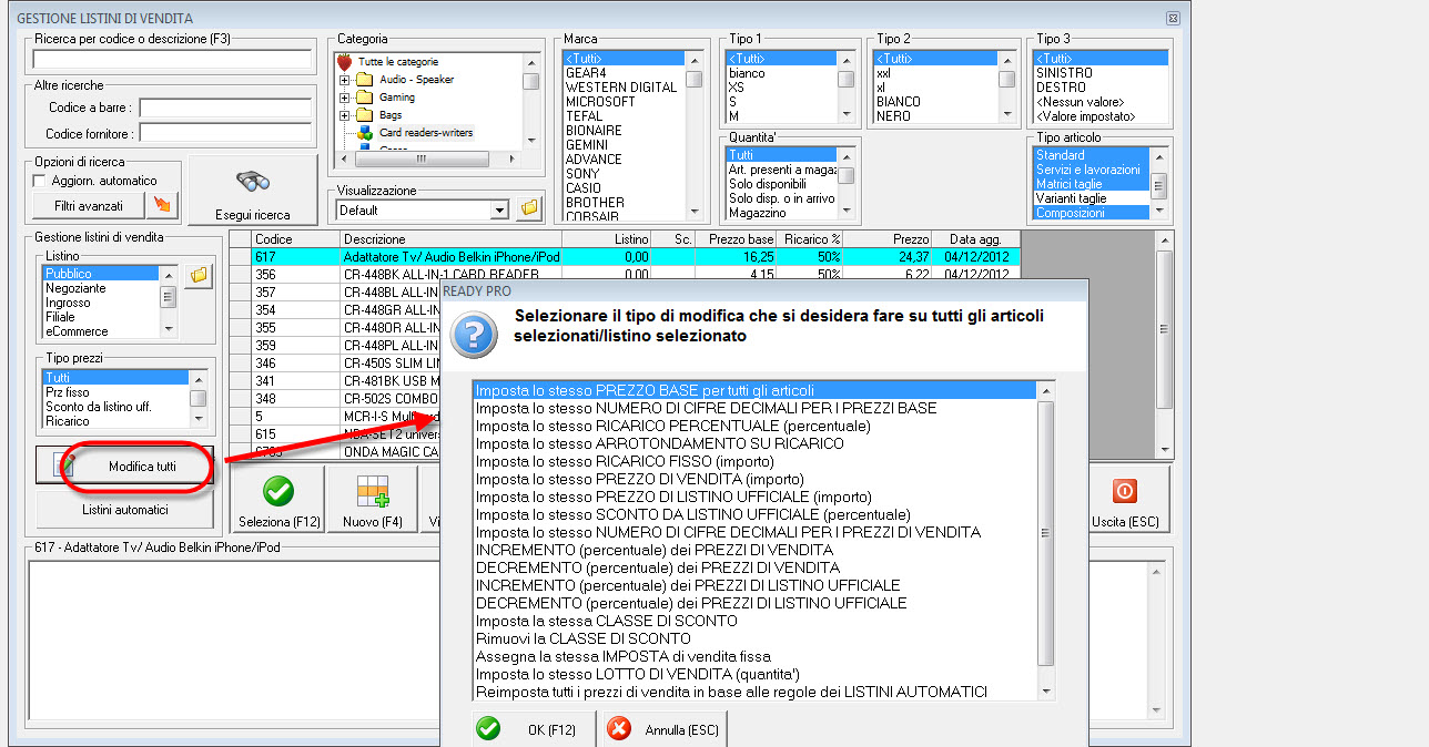 2) Se per esempio io volessi abbassare il prezzo di ogni listino a tutti i capi della collezione A/I 2012 (per cui ho impostato un campo apposta nell'anagrafica articoli) di un tot % , cosa mi conviene fare? un'importazione?