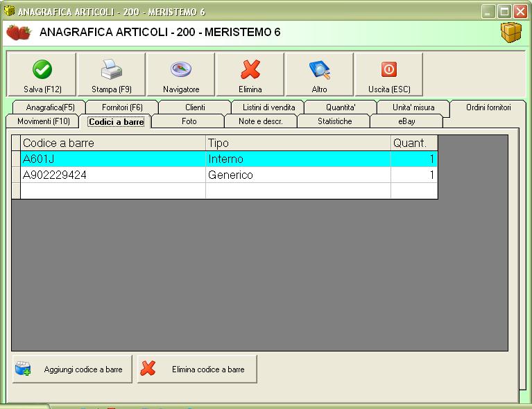A questo punto dovresti inserire questo codice nel tab CODICI A BARRE dell'articolo corrispondente.