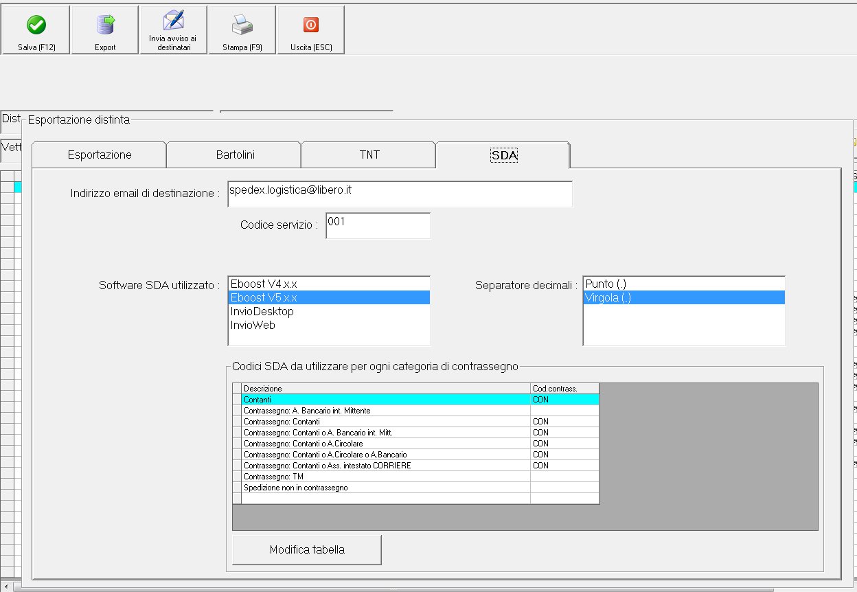 Al momento ci troviamo in difficoltà perche Dobbiamo inviare 2 distinte di spedizione tramite email ma una deve avere dei parametri di invioweb con codice servizio S09
