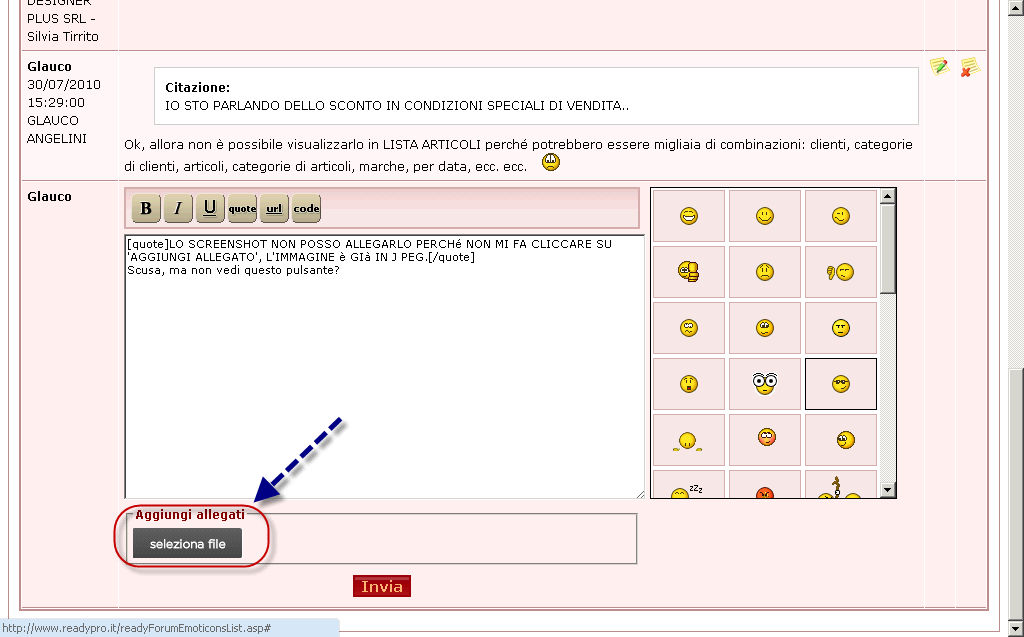 so come si aggiunge l'immagine, ma non ho l'opzione 'seleziona file'. non mi mostra il pulsante.. c'è solo scritto aggiungi allegato e non posso cliccare su niente