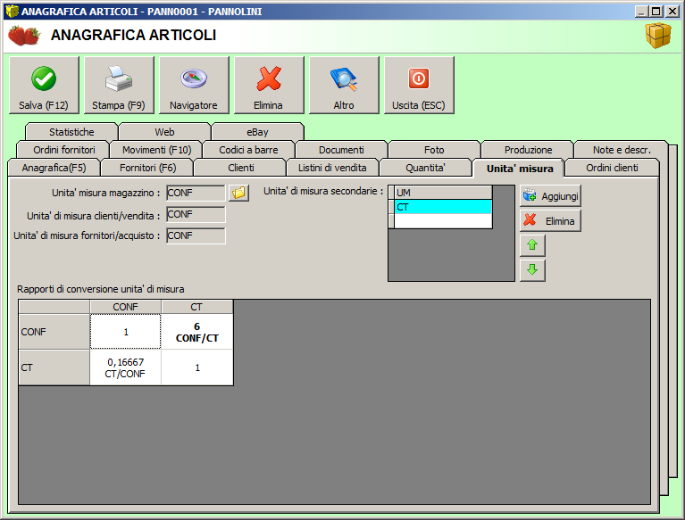 Citazione: Citazione: Lato vendita io voglio imporre la vendita a cartoni ( quindi 6 confezioni minimo) B2B. Ma eventualmente vorrei avere anche la possibilità in casi isolati di vendere e quindi fatturare singole confezioni. B2C Sul sito di eCommerce non è prevista la gestione di differenti unità di misura.