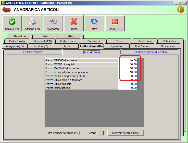 Poiche' ho indicato che l'unita' di misura di magazzino/vendita e' in confezioni i prezzi base sono gia' ricalcolati in confezioni (facendo il rapporto 1/6)