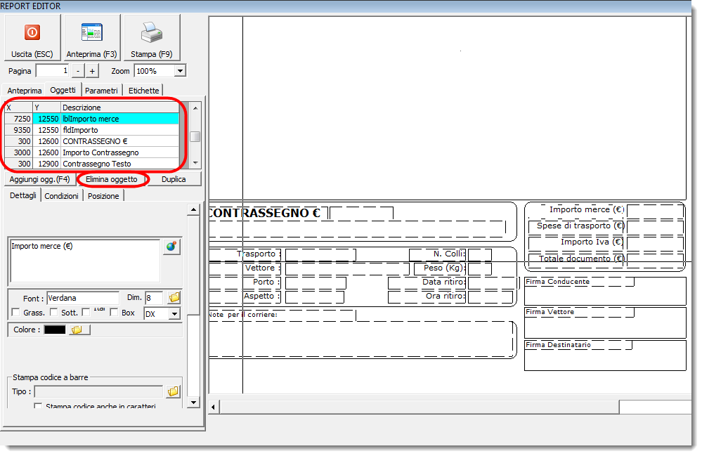 Impostazione Report di stampa