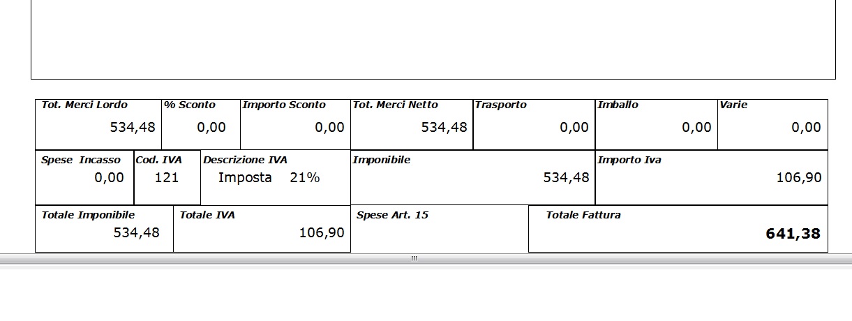 Buongiorno. Volevo stampare dei vecchi documenti relativi al 2007 ma l'aliquota dell'IVA che mi scrive il programma è attualizzata al 21%... ho notato che nel corpo del documento, relativamente agli articoli, appare correttamente l'aliquota del 20% e anche lo scorporo a pedice tra imponibile e aliquota è corretto. Sembra che sia stato "inserito a mano" la dicitura 21% (allego immagine) anche se entrando nel report editor i campi in questione compaiono in bianco, quindi non già scritti a mano