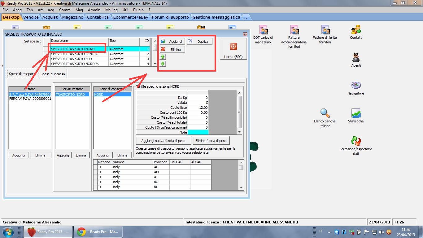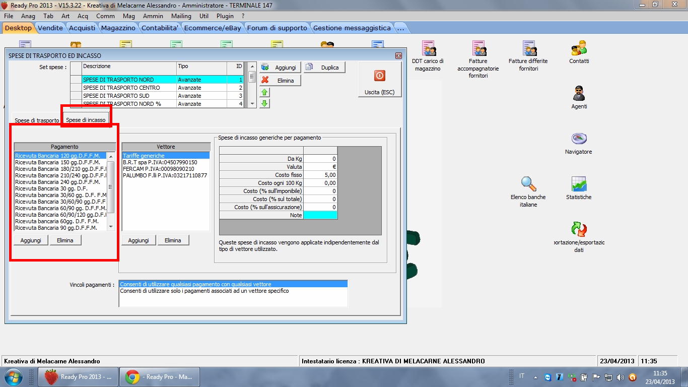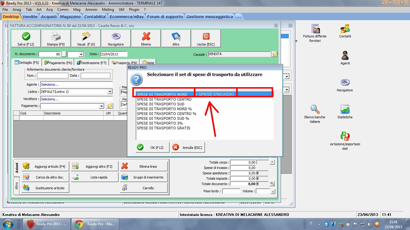 Modificare il campo SET SPESE DI TRASPORTO ED INCASSO