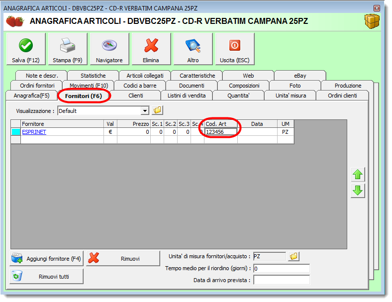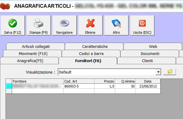 Citazione: durante un ordine fornitore Quando crei l'ordine al fornitore con quell'articolo Ready oltre a non mostrarti il codice ti chiede anche il prezzo? Eventualmente puoi mostrarci uno screenshot del Tab FORNITORI dell'articolo?