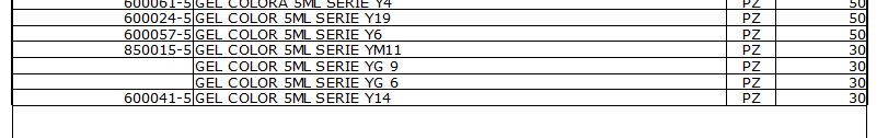 Lo screenshot del corpo documeto è il primo che trovi in questo post in alto, la prima colonna a sinistra è il campo codice articolo del fornitore, dove si notano i due campi vuoti, in particolare riassumo: