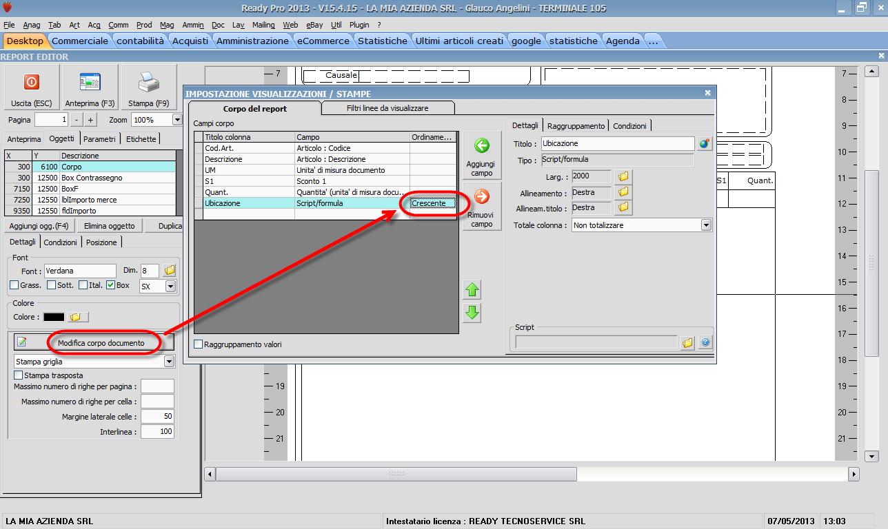 Le operazioni successive foto 2 e 3 non sono supportate da stampe, come in anagrafica articoli infatti come da foto 5 è previsto un format di stampa e come da foto 6 riesco anche ad ordinarlo a mio piacimento prima della stampa definitiva.