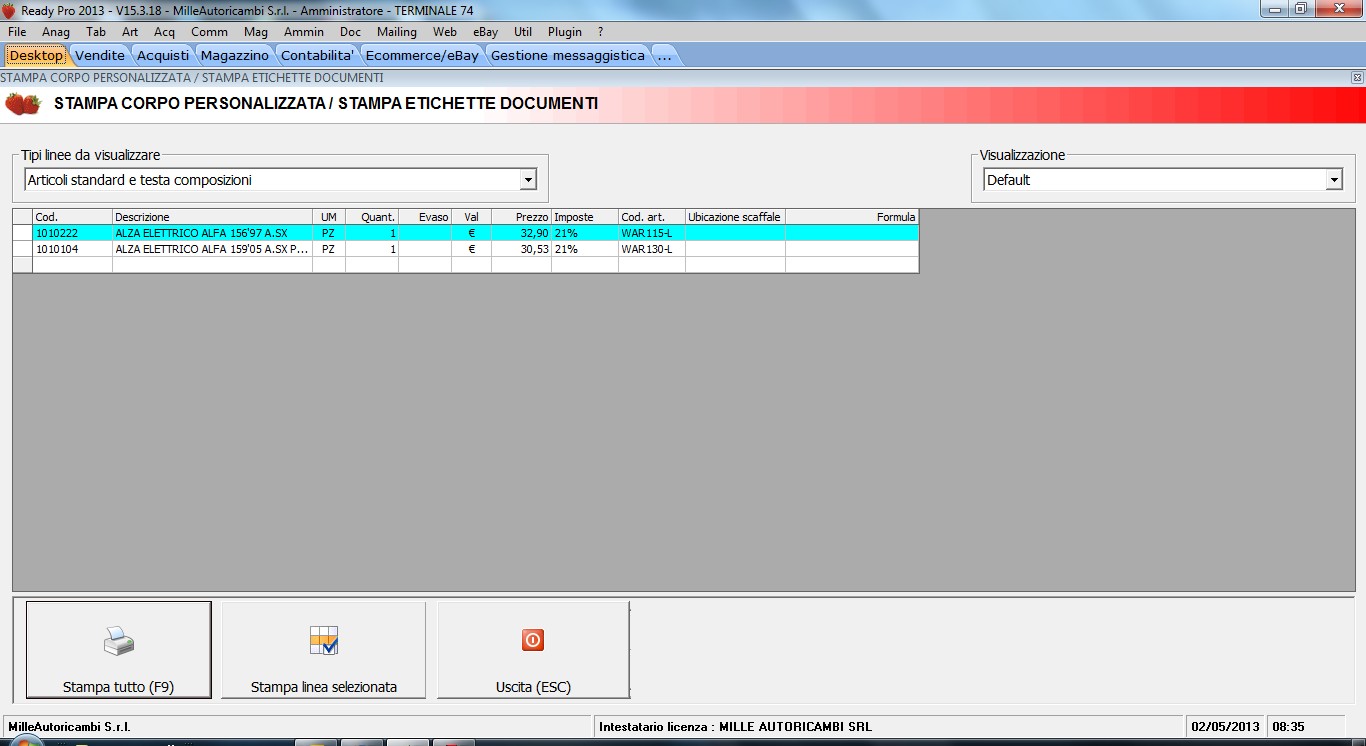 Salve Glauco, sono stato fuori per lavoro, come vedi ho risolto per la stampa su anagrafica articoli , per l'altra richiesta è possibile fare qualcosa? (le ultime 2 screenshot). Saluti Maurizio