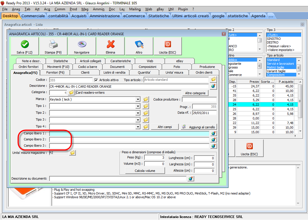 Citazione: abbiamo inserito usamdo uno dei campi liberi la voce ubicazione nell'ordine clienti Scusami ma probabilmente non ho capito: hai inserito l'UBICAZIONE nei campi liberi dell'anagrafica articolo come mostrato in figura?