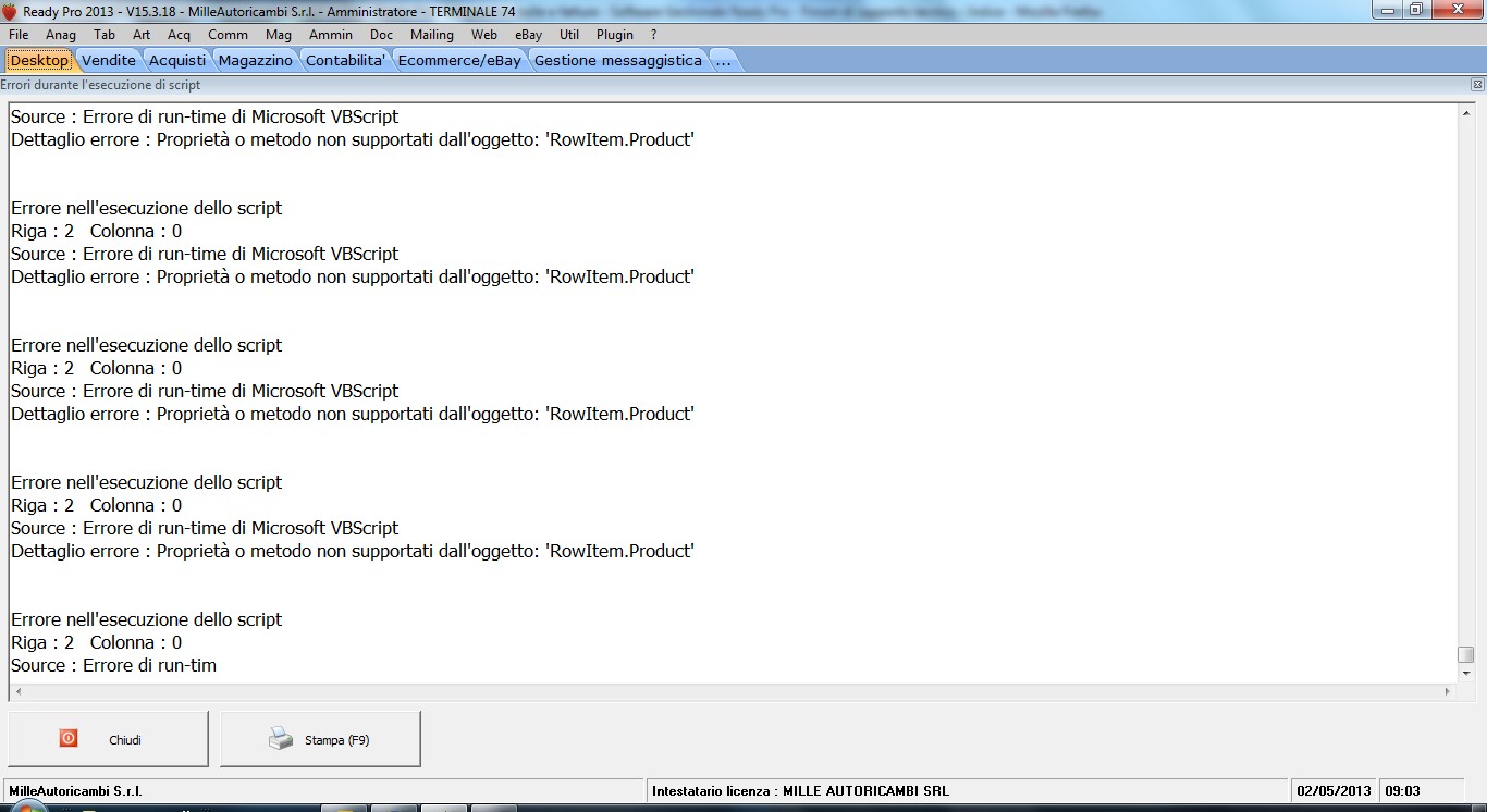 Riguardo l'appicazione dello script all'anagrafica articolo il programma va in tilt come da foto 7, non appena chiudo la maschera d'errore il programma riprende normalmente.