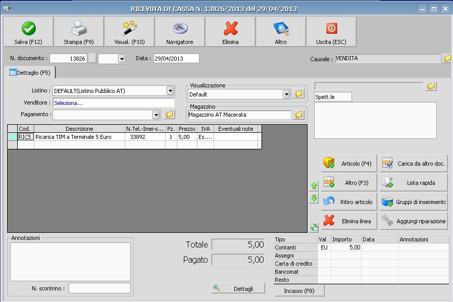 Al momento della vendita di una ricarica a di un qualsiasi servizio a Terminale andavamo ad inserire sulla maschera della vendita anche il numero di telefono o l'imei del telefono venduto
