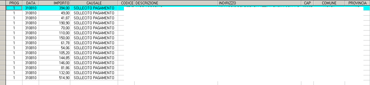 Nell'esempio che vedete c'è quindi da modificare solo il campo PROG che deve quindi contenere un numero progressivo (1,2,3,4,5,6 ecc)