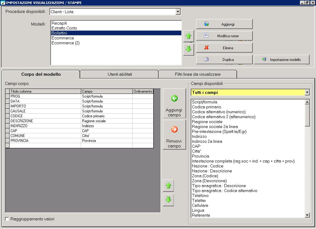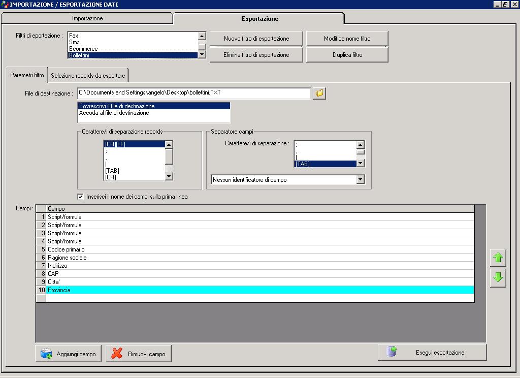 CREAZIONE TRACCIATO RECORD CLIENTI